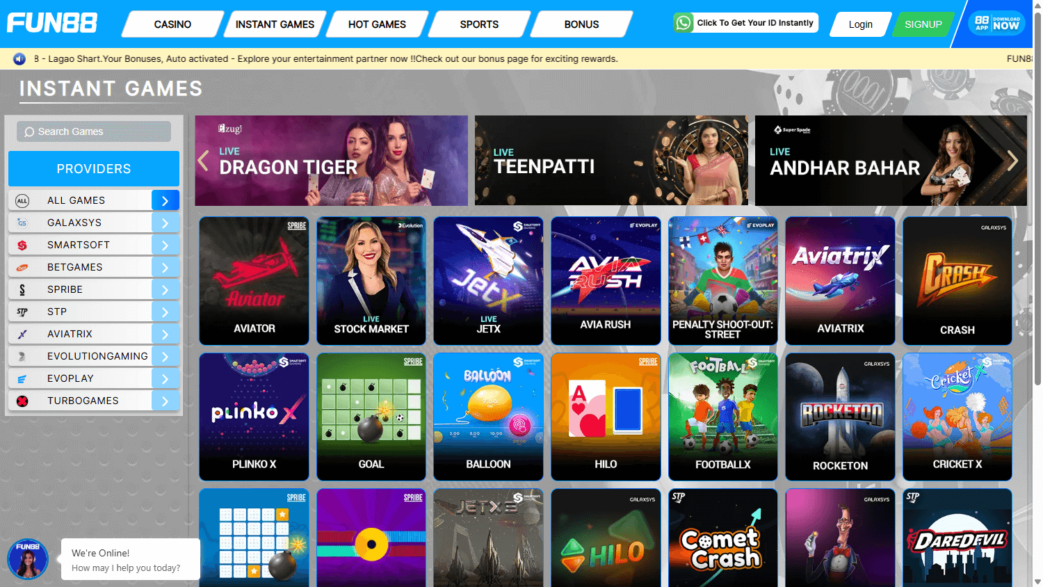 Entre los puntos fuertes de Fun88 Casino se encuentra su amplia colección de juegos. Con cientos de títulos disponibles, los jugadores pueden disfrutar de una gran variedad de opciones, desde las clásicas máquinas tragamonedas hasta las modernas tragaperras de video con funciones de bonificación y temáticas atractivas. Títulos populares como Book of Dead, Fantastic Link Zeus y Fishermen destacan la diversidad de la colección, mientras que las actualizaciones periódicas garantizan la constante incorporación de nuevo contenido. Además de las tragamonedas, el sistema también incluye juegos de mesa como blackjack, ruleta y baccarat, junto con experiencias con crupier en vivo que brindan una experiencia de casino en tiempo real aún más inmersiva directamente en la pantalla del jugador.